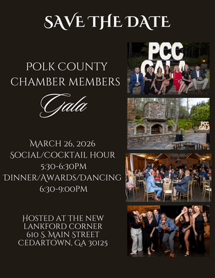Please join us for the 4th Annual Polk County Chamber Members Gala! Thank you to our Presenting Sponsors, Atrium Health Floyd and Georgia Power. This event is to show our appreciation for our Chamber partners who are dedicated to the growth and prosperity of our community!